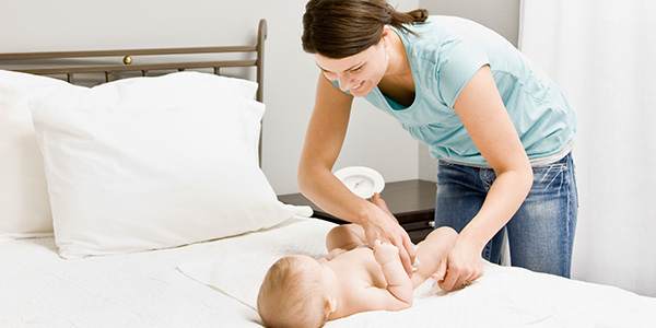 - Aplica crema protectora para bebés en la zona (también en la entrepierna). No hace falta aplicar mucha cantidad, con un poco vale. Lo importante es extenderla bien y con suavidad. La mejor técnica para cambiar pañales es hacerlo con mucho mimo.