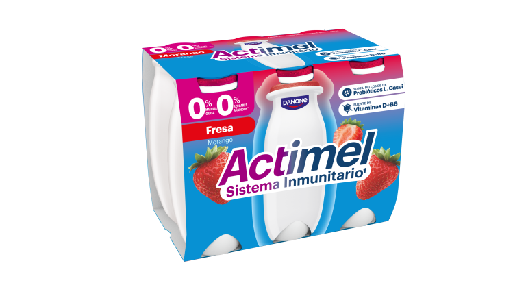 Denominación legal: Leche desnatada fermentada con fresa, vitaminas (B6 y D). Con edulcorantes